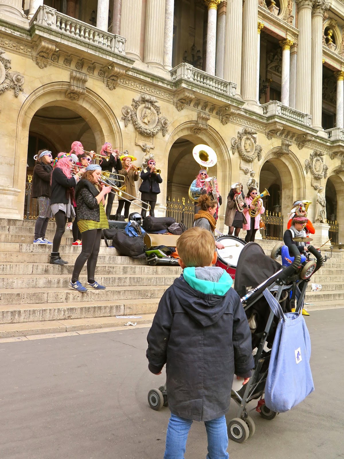 They heard we were coming so they hired a band -- or, rather, this band showed up. A small crowd of families appreciated their efforts, and the efforts of the girl brass band in pink wigs. Especially a little boy.